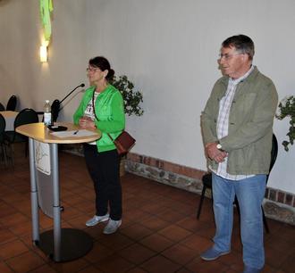 Schliebens Bürgermeisterin Cornelia Schülzchen und Dr. Gert Wille bei der Präsentation
