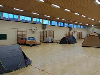 Allerdings gibt es beim Zelten auch einige Dinge zu beachten. Eine gute Vorbereitung ist das A und O, um das Zelten entspannt und sicher zu gestalten. Dazu gehört unter anderem die Wahl des richtigen Zeltes, das genügend Platz für Freunde und sich selbst bietet sowie wetterfest ist. Gesagt getan, setzten wir unser Vorhaben am 23.06.2023 zum 24.06.2023 um. Aber wer spielte nicht mit: DAS WETTER!!!! Wir wären aber nicht die 3b der Schule Schlieben, wenn wir uns von äußeren Erscheinungen abhalten lassen würden. Der Grill glühte, das kalte Buffet war aufgebaut, die geplante Vorführung für unsere Eltern und Horterzieherin hatten wir einstudiert, was konnte uns da noch abhalten. Kein Regen, kein Wind und trüber Himmel sollte uns die Stimmung vermiesen. WIR BAUTEN DIE ZELTE EINFACH IN DER TURNHALLE AUF: Kleine Höhlen als Rückzugsort verstärkte noch das Zusammengehörigkeitsgefühl. Die Nachtruhe wurde aber nach dem reichlichen Schlemmen nicht gleich angetreten.