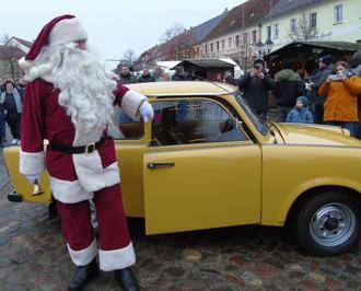 Der Weihnachtsmann, schon sehnsüchtig von den Kindern erwartet, kam im gelben Trabant mit vollgepackten Säcken vorgefahren.