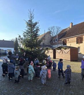 Vorweihnachtliche Stimmung zog am Donnerstag, den 18.12.2025 in Knippelsdorf ein, als die Kinder der Kita „Wassertröpfchen“ ihren selbst gestalteten Weihnachtsbaumschmuck mitbrachten, um den Weihnachtsbaum für den Knippelsdorfer Weihnachtsmarkt zu schmücken. In den vergangenen Tagen hatten die Mädchen und Jungen mit viel Kreativität die Weihnachtsbaumdekoration gemalt, liebevoll gestaltet und anschließend ausgeschnitten.