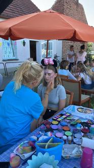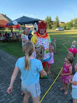 Schon vorher wurde ordentlich die Werbetrommel gerührt, so dass nicht nur Grassauer Kinder uns besuchten. Auch Petrus hatte wieder gutes Wetter für die Kinder geschickt. So war es auch möglich einen Wasserspielplatz für die Kleinen aufzustellen. Denn bei herrlichem Sonnenschein und 30 Grad planscht es sich wunderbar. Es wurden Laternen und Armbänder gebastelt, kleine Eisköniginnen geschminkt, die Kinder tobten auf der riesigen Ritterhüpfburg und zum Schluss ritt man noch schnell eine Runde auf den Ponys. Leider hatte der Clown „Diddi“ kurzfristig abgesagt doch davon lassen sich die Grassauer nicht abschrecken. Kurzerhand übernahm ein ortsansässiger Vater die Clown-Rolle. Die Kinder freuten sich sehr darüber als es hieß Jungs gegen Mädchen beim Tauziehen. Anschließend gab es Zuckerwatte für alle.