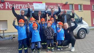 Am 17.03. klingelte das Telefon des Ortswehrführes, am anderen Ende waren Anneli und Marcus von Antenne Brandenburg. Sie hatten die gute Nachricht das der Feuerwehrverein, bei der Aktion Wir halten zusammen 2500 Euro gewonnen haben. Dort hatten wir uns eine Woche zuvor angemeldet um für die Bambini- und Jugendfeuerwehr eine Feuerlöscherübungsanlage zu beschaffen. Da diese Idee so gut ankam wurden wir aus über 1700 angemeldeten Vereinen ausgewählt und bekamen Besuch von Antenne Brandenburg und dem Ostdeutschen Sparkassenverband zur Scheckübergabe.