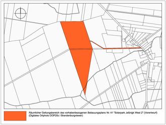 Die Stadtverordnetenversammlung der Stadt Schönewalde hat in ihrer öffentlichen Sitzung vom 26.03.2025 den Vorentwurf des vorhabenbezogenen Bebauungsplans Nr. 41 „Solarpark Jeßnigk West 2" (Stand 31.01.2025) beschlossen, die dazugehörige Begründung sowie Umweltbericht und Artenschutzfachbeitrag gebilligt und zur frühzeitigen Beteiligung der Öffentlichkeit gem. § 3 Abs. 1 BauGB sowie der Behörden und sonstigen Träger öffentlicher Belange gem. § 4 Abs. 1 BauGB und der Nachbargemeinden bestimmt.