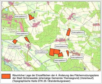 Die Unterlagen zum Vorentwurf der 4. Änderung des Flächennutzungsplanes der Stadt Schönewalde (ehemalige Gemeinde Themesgrund), bestehend aus zwei Planzeichnungen, der Begründung sowie acht standortbezogenen Umweltberichten (alle Stand 28.02.2025), sind in der Zeit