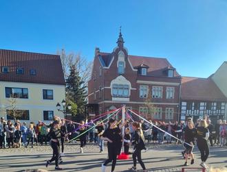 Der Auftritt der Tanzgruppe vom Hort “Sonnenschein” beim Aufstellen des Maibaums am Vorabend des 1. Mai auf dem Marktplatz in Schönewalde ist schon zu einer sehr schönen Tradition geworden.