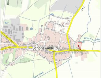 Der Geltungsbereich umfasst die Flurstücke 583/1, 585/1 und 1120 der Flur 3 der Gemarkung Schönewalde. Er ist auf der beigefügten Abbildung dargestellt.
