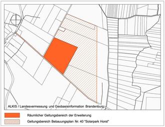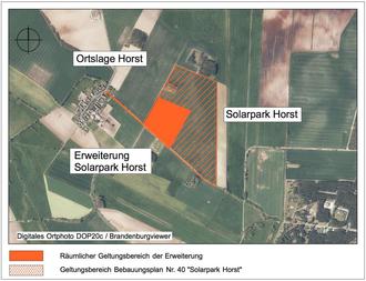 Es ist im „Amtsblatt der Stadt Schönewalde“, zugleich Mitteilungsblatt für das Stadtgebiet Schönewalde, Nr. 6 vom 14.06.2024 bekannt zu machen, dass die Stadtverordnetenversammlung in ihrer Sitzung am 29.05.2024 mit Beschluss-Nr.: 43/2024 die Erweiterung des Geltungsbereichs des vorhabenbezogenen Bebauungsplanes Nr. 40 „Solarpark Horst“ zur Errichtung einer Freiflächen-Photovoltaikanlage in der Gemarkung Horst der Stadt Schönewalde beschlossen hat.