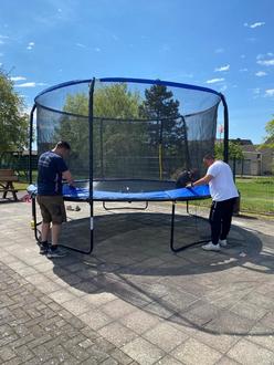 Für den Sportplatz wurde ein neues Trampolin angeschafft und aufgebaut.
