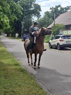 Tierisch ging es in unserer kleinen KiTa am darauf folgenden Montag weiter. Zur Überraschung aller, Kinder und Tagesmutti, stand ein echtes Pferd auf dem … Gehweg.