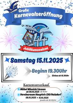 Mit der „Großen Karnevalseröffnung”, einer bunten Bühnenshow, am 15.11.2025 startet der Holzdorfer Karnevalsclub in seine Saison.
