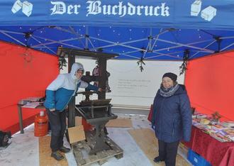 - Wir sind dabei mit einer Gutenberg Presse, christlichen Kalendern und Büchern – alles kostenlos!