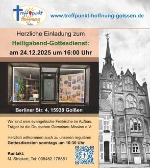 Gottesdienste: sonntags 10:30 Uhr– in der Berliner Str. 4, 15938 Golßen