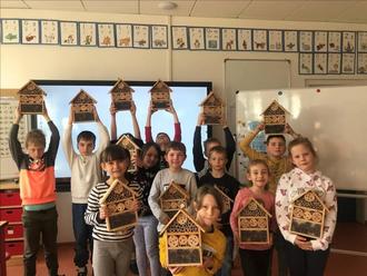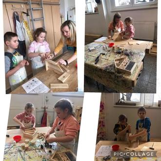 Außerdem bastelte jedes Kind im 2. Schulhalbjahr selbst ein Insektenhotel für den Garten zu Hause. Dank der großen Unterstützung von Ronny und Anne aus dem Hortbereich, konnte jeder mit viel Geschick und Teamarbeit sein eigenes Insektenhotel bauen. Jedes Kind musste dazu erst einmal die einzelnen Teile sortieren und die Bauanleitung genau lesen können. Mit Hammer und Nägel ging es dann an die Arbeit. Alle Schüler waren am Ende mit dem angefertigten Produkt zufrieden.