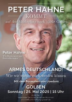 Der TV-Moderator Peter Hahne kommt wieder auf den Marktplatz nach Golßen am 25.05.2025: