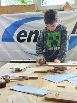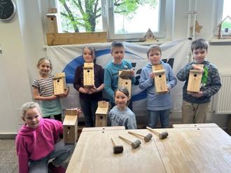 Dank der Unterstützung von ENVIA M bauten wir mit den beiden Horterziehern Ronny und Anne unsere Vogelkästen im Unterricht.