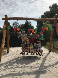 Nach feierlicher Einweihung mit den Kindern wurde die Nestschaukel zum fröhlichen Bespielen freigegeben.