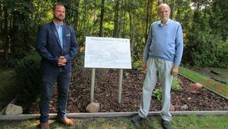 Bild aus 2023: Einweihung nach der Neugestaltung der Kriegsgräberstätte in Glienig Herr Kaminski (Amt Unterspreewald) und Herr Ott (AG Dt. Luftfahrthistorik)