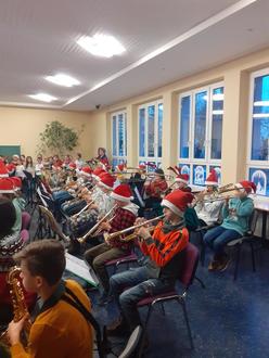 Die Schüler bedankten sich mit einem Ständchen der Bläserklasse und wunderschön gesungenen Weihnachtsliedern vom Schulchor. Die frohen Lieder und die Vorfreude auf das Fest in den Gesichtern der Schüler erwärmten allen Zuhörern das Herz und der Zauber der Weihnacht wurde beim gemeinsamen Singen verbreitet. Alle Anwesenden verließen danach die Aula weihnachtlich eingestimmt und mit einem Lächeln im Gesicht.