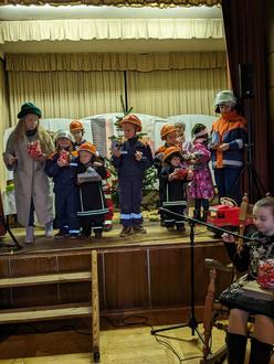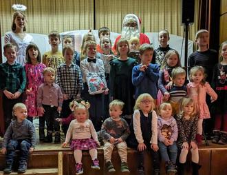 Die zahlreich erschienen Gäste und Familienmitglieder waren begeistert und ließen sich anschließend bei weihnachtlichen Klängen des Erwachsenenchores Kaffee und Gebäck schmecken. Kaum waren die Bäuche voll, klingelte es schon von draußen. Der Weihnachtsmann erschien in Begleitung seines fleißigen Engels mit einem Sack voller Geschenke. Doch ohne Fleiß, kein Preis. Er war ganz angetan, wie einfallsreich und selbstbewusst die Kinder Lieder und Gedichte aufsagten. Besonders freute er sich darüber, dass er nicht „Lieber guter Weihnachtsmann“ in Endlosschleife hören musste. Nicht weniger glücklich waren die Kinder über ihre Geschenke und den gelungenen Nachmittag.