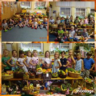 Am 6. September 2023 haben wir unser traditionelles Erntefest gefeiert. Um 8.00 Uhr trafen sich alle Kinder im Dinoraum zum gemeinsamen Frühstück. Die Erzieher bereiteten, neben geschmackvoll belegten Stullchen auch andere Leckereien wie Wiener, Fruchtzwerge und vieles mehr vor. Jedes Kind brachte einen bunt gefüllten Erntekorb mit. Neben Obst und Gemüse waren in den Körben auch verschiedene Säfte, Tees oder etwas zum Naschen. Ein großes Dankeschön an alle Eltern, die zusammen mit ihren Kindern die Körbe befüllt haben. Nach dem Frühstück konnten alle Kinder eine kleine Fingerpuppe in Form von Igeln, Blättern, Äpfeln oder Birnen basteln. Anschließend ging es auf den Spielplatz zu lustigen Wettspielen wie „Kartoffel-/Tomatenlauf“ und „Spielzeugautos aufwickeln“ bei herrlichem Spätsommerwetter. Am meisten Spaß hatten die Kinder allerdings beim „Schubkarren rennen“. Dabei ging es um Schnelligkeit und Geschicklichkeit. Die Schubkarren waren mit Kartoffeln, Möhren und Kohlrabi beladen. Das Gemüse musste dann ganz schnell zum Teampartner gebracht und ausgeladen werden, damit dieser es wieder einladen und zurückflitzen konnte.