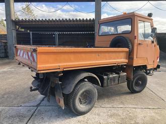 Multicar M25 LKW Kipper offener Kasten, Pritschenfahrzeug, Winterdienstausstattung mit Schneeschiebeschild und Streukastenaufbau sowie einer Kehrmaschine, HU abgelaufen seit März 2023, Erstzulassung 01/1986, Zul. Gesamtgewicht 3.450 kg, Höchstgeschwindigkeit 50 km/h