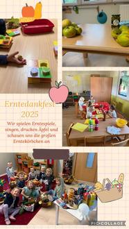 Es ist jeden Tag eine Freude zu sehen wie die Kinder Obst und Gemüse mit gutem Appetit wegputzen, immer liebevoll von unserer Küchenfee hergerichtet, und das nicht nur während der Erntewoche. Vielen lieben Dank dafür. Aber es wurde nicht nur gegessen, es wurde auch gesungen (vom Äpfelchen und vom Herbst), gebastelt (Apfel, Birne, Pflaume u.a.), gemalt (Kürbisse) und getanzt. So ging eine erlebnisreiche Erntewoche vorbei. Vielen Dank an die einfallsreichen Eltern, an die fleißigen Apfelmusköchinnen (es schmeckte köstlich) und an die emsigen Küchenfrauen im „Lindenkrug Großbahren“, denn sie zaubern aus dem Gemüse, welches wir nicht verbrauchen können, leckere Speisen.