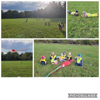 Allzusehr pustete der Wind zwar nicht, aber es reichte um die Drachen steigen zu lassen. Die Kinder gaben sich viel Mühe, flitzten über die Wiese und freuten sich sehr über ihre Erfolge. Diese Anstrengung macht durstig und müde Füße, deshalb waren Pausen für die Kinder diesmal sehr willkommen. Aber nach der Pause ging es sofort wieder los und wir staunen jedes Jahr wieviel Ausdauer die Kinder beim Drachensteigen haben. Es macht ihnen viel Spaß und an der frischen Luft sind wir sowieso jeden Tag sehr gern.
