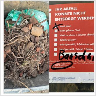 Die Stadt Sonnewalde weist darauf hin, dass das Einbringen von Abfällen – insbesondere von Bau- und Sperrabfällen – in fremde Abfallbehälter eine Ordnungswidrigkeit nach § 28 i.V.m. § 69 Kreislaufwirtschaftsgesetz (KrWG) darstellt und mit einem Bußgeld geahndet werden kann.