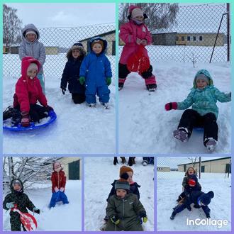 Außerdem haben wir unsere Kita winterlich gestaltet und damit auf neuen Schnee in diesem Jahr gehofft. Wir bastelten Schneeflocken mit dem Scherenschnitt, bemalten Toilettenpapierrollen und machten aus ihnen einen Schneemann. Frau Holle hat es gut mit uns gemeint und schenkte uns einige Tage eine Menge Schnee. Das herrliche Wetter haben wir genutzt und sind natürlich super oft Schlitten fahren gewesen. Das war ein riesen Spaß!