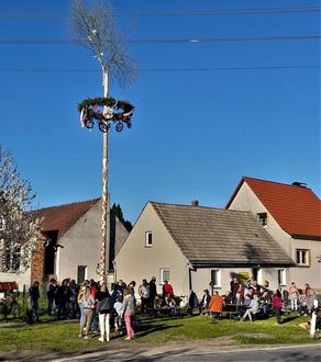 Am 30.04.2023 um 17 Uhr trafen sich die Kleinkrausniker, um wieder ohne Einschränkungen den Maibaum aufzustellen. Das halbe Dorf hatte sich versammelt um auf der Dorfaue diesem Spektakel beizuwohnen und dann auch die angebotenen Speisen und Getränken zu verkosten. In diesem Jahr haben wir die Zunftzeichen, die unseren Maikranz schmücken, erneuern müssen, da die ersten Zeichen leider den Beanspruchungen nicht Stand gehalten haben. Nach dem Aufstellen und Ausrichten des Baumes fand auch der traditionelle Bändertanz statt, bei dem alles reibungslos ablief und kein Bändersalat entstand. Nun ziert wieder ein schöner Maibau die Dorfaue von Kleinkrausnik.