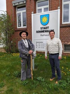 Sein Weg führte ihn am 15.04.2025 durch Sonnewalde. So trug er seinen Vers vor dem Bürgermeister und Verwaltungsteam in der Stadtverwaltung Sonnewalde vor und erzählte von seinen bisherigen Erfahrungen und Erlebnissen auf Wanderschaft und bat um eine kleine Reiseunterstützung, die wir ihm natürlich gern gewährten.