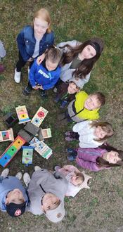 Angehende Holzfertiger des GVFB e.V. (Gemeinnütziger Verein zur Förderung der beruflichen Bildung) Herzberg stellten diese Kästen unter der Leitung von Herrn Bölke her und überließen sie unseren Kindern zur kreativen Gestaltung. Sowohl die Großen als auch die Kleinen hatten viel Freude beim Malen und dank helfender Dorfbewohner zieren die Kästen nun die Bäume des Ortes. Wir hoffen sehr, dass auch der ein oder andere Vogel bzw. Fledermaus einziehen und sich wohlfühlen wird.