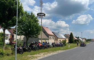 Ein sonniger Tag begleitete die Oldtimerfreunde von Kleinkrausnik und ihre Gäste auf eine abwechslungsreiche Tour. Bis 13 Uhr hatten sich 19 Motorräder und 3 Auto zur Ausfahrt eingefunden. Nach der Begrüßung der Gäste und der Vorstellung des Tagesprogramms haben die Teilnehmer ihre Schätze startklar gemacht. Den ersten Fotostopp haben wir in Kleinkrausnik am Maibaum gemacht, dann ging es durch einige Dörfer nach Naundorf zum Schloss Liliput.