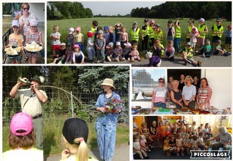Am 05.06.2025 haben wir, anlässlich des Kindertages, mit allen Kindern der Kita eine „Wanderung ins Blaue“ in das Tierparadies der Familie Vierath unternommen. Auf dem Weg zu Familie Vierath pflückten die Kinder Blumen, um diese dann als „Dankeschön“ zu überreichen. Nach der herzlichen Begrüßung von einem Ständchen aus dem Jagdhorn, nahmen wir uns die Zeit für ein kleines Picknick. Jetzt ging es hinein in den Zauberwald der Familie Vierath. Wir konnten viele verschiedene Tiere wie Schweine, einen Adler und andere Vogelarten beobachten und wir durften sie sogar füttern. Hierbei konnten alle Kinder viel dazulernen. Ein ganz ganz großes „Dankeschön“ hier nochmal an unsere Gastgeber, für die freundliche Begrüßung und den vielen tollen Erfahrungen die wir sammeln konnten.