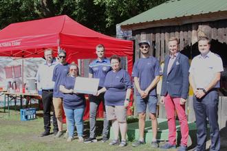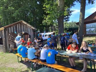 Jedoch gab es vor Beginn der vielen Workshops erst einmal einen gemeinsamen Appell und es wurden der Amtsdirektor, der Amtswehrführer und der stellvertretende Bürgermeister von Sonnewalde sowie Christian Drangosch vom Rotary Club Finsterwalde herzlich begrüßt. Dieser übergab ein Scheck für das Zeltlager.