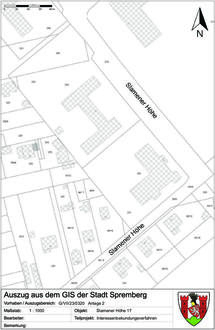 Das Grundstück Slamener Höhe 17 (Gemarkung Spremberg, Flur 29, Flurstück 354, Größe 5.238 m² und Flurstück 269, Größe 1.270 m²) befindet sich im Eigentum der Stadt Spremberg/Grodk und liegt im Wohngebiet Georgenberg. Die Entfernung zum Stadtzentrum beträgt ca. 1 km, zu Geschäften ca. 700 m, zur Bushaltestelle und zum Bahnhof ca. 300 m.