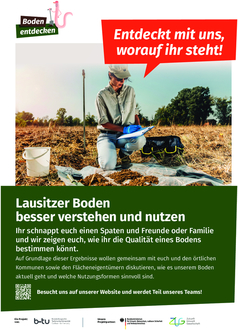 Boden entdecken heißt ein neues Projekt an der BTU Cottbus-Senftenberg, welches auf die Mithilfe der Bevölkerung baut: Indem sich viele Interessierte an den Untersuchungen beteiligen, sollen Umweltbewusstsein und eine sinnvolle Nutzung Lausitzer Böden in den Fokus gerückt werden. Dafür werden interessierte Bürgerinnen, Bürger und Familien zu Bodenforschungs-Teams.