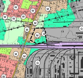 Der Änderungsbereich ist im geltenden Flächennutzungsplan als Fläche für die Landwirtschaft und Wald dargestellt. Planungsziel ist die Darstellung dieser Fläche als gewerbliche und Mischbaufläche. Der Wald bleibt erhalten.