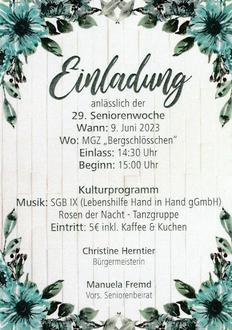 Karten sind im Bergschlösschen, in der Tourist-Information sowie bei der Volkssolidarität erhältlich.