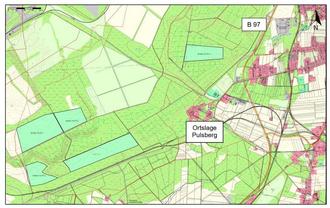 Das Plangebiet befindet sich in den Gemarkungen Jessen und Pulsberg im Westen der Stadt Spremberg/Grodk außerhalb des Siedlungszusammenhanges.