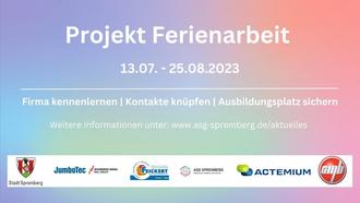 Arbeitgeber, die noch Ferienarbeit anbieten möchten, können sich über die gesetzlichen Rahmenbedingungen (Jugendarbeitsschutzgesetz) ebenfalls bei der ASG Spremberg/Sandra Krautz informieren.