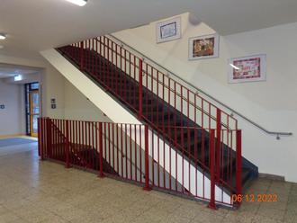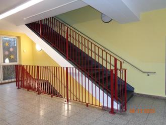 Die alten Treppengeländer und Handläufe in den Treppenhäusern in der Grund- und Oberschule in Stolpen erfüllten nicht mehr die heutigen Anforderungen an die Normen. Der erforderliche Ersatzneubau resultiert aus den Forderungen der Gefährdungsbeurteilung im Zusammenhang mit dem Muster der „Checklisten zur Gefährdungsbeurteilung in allgemeinbildenden Schulen“ der Unfallkasse Sachsen. Die neuen Treppengeländer und Handläufe erfüllen nun die Normen an die geforderte Sicherheit. Die Treppengeländer wurden farblich an die bauliche Umgebung angepasst und fügen sich somit harmonisch in die Flurbereiche ein. Die neuen Edelstahlhandläufe runden das Gesamtbild ab. Die Maßnahme wurde in den Herbstferien 2022 durch die Fa. Metallbau Göttlich aus Neustadt umgesetzt und durch das Architekturbüro Grützner aus Stolpen baufachlich begleitet.