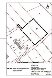 Der Geltungsbereich umfasst die Flurstück Nr. 480/2, 481/2 und Teilflächen des Flurstückes Nr. 481/1 der Gemarkung Stolpen (genaue Abgrenzung siehe Lageplan vom 31.07.2023).