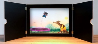Ein Kamishibai ist ein traditionelles japanisches „Papiertheater“ in Form eines Holzrahmens mit Flügeltüren, in den individuell erstellte Bildkarten im DIN A3 Format eingeschoben und bildgestützt erzählt werden. Das Kamishibai wird vor allem eingesetzt, um Sprach-, Lese- und Erzählkompetenzen zu fördern, die Aufmerksamkeit zu schärfen und den Dialog mit Zuhörern anzuregen. Es ist vor allem für Kinder ab 1 Jahr bis zum Grundschulalter geeignet.