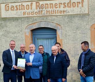 Die Freude war groß, als Landrat Michael Geisler am 10. Oktober 2023 den Fördermittelbescheid in Höhe von 500.000 Euro an den Bürgermeister Maik Hirdina für den 1. Bauabschnitt des Dorfgemeinschaftshauses übergeben hat.