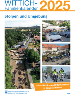 Für das Jahr 2025 wird es wieder den kostenfreien Familienkalender der LINUS WITTICH Medien KG geben. Dieser wird nicht über den Stolpner Anzeiger verteilt, sondern kann ab 06. November 2024 bei den folgenden Auslagestellen abgeholt werden.