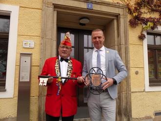 Vereinsvorsitzender Udo Michel fordert die Herausgabe des Rathausschlüssels, welcher durch Bürgermeister Maik Hirdina überreicht wurde.