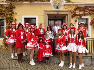 Mit diesem Schlachtruf versammelten sich auch in diesem Jahr am 11.11. und 11:11 Uhr Vertreter des Langenwolmsdorfer Karnevalsclubs e. V. vor dem Rathaus.