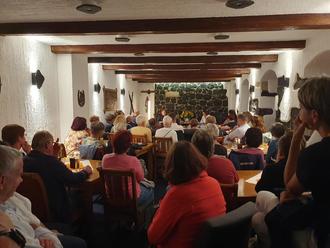 Am weiteren Nachmittag gab es an zehn Orten über 20 Lesungen. Egal, ob in der Amtsbaderei, im Burghotel, im Landgut Lietze, im Friseurstudio Nicole Müller, in der Garküche oder im Goldenen Löwe, überall herrsche beste Stimmung. Vorlesen und Zuhören macht Freude und verbindet. Zur Abschlusslesung auf der Burg Stolpen war dann die Kornkammer mit Publikum voll. Die Stativkarawane mit Thomas Pöschmann zeigte faszinierender Bilder der Sächsischen Schweiz. Burgchef Uli Kretzschmar und sein Team servierten Getränke und waren vom Andrang nicht nur überwältigt, sondern von dieser Lesenacht absolut begeistert. „Weiter so“, meinte Kretschmar und freut sich schon auf das kommende Jahr.