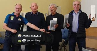 Anlässlich unseres Jubiläums trafen sich die aktiven Mitglieder der Abteilung Volleyball des SV Blau-Gelb Stolpen am 04.11.2023 zu einem vereinsinternen Turnier in den beiden Sporthallen und im Anschluss zu einer kleinen Festveranstaltung im Atrium der Oberschule. Bürgermeister Maik Hirdina und Vereinspräsident Roland Pichler ließen es sich nicht nehmen, mit Leidenschaft und Können auch schon an den Spielen aktiv teilzunehmen, bevor sie später die Leistungen der Volleyballerinnen und Volleyballer der letzten Jahrzehnte würdigten. Zwei der Jungs, die 1953 erstmals unter Leitung des Lehrers Leo Schmalfuß den Volleyball in die Hand nahmen, wurden mit der Ehrennadel des Kreissportbundes ausgezeichnet, Harald Macykowski und Günther Warecka. Ebenso geehrt wurden die Volleyball-Urgesteine Joachim Tichatschke und Eberhard Große für ihr Engagement für den Stolpner Volleyball.